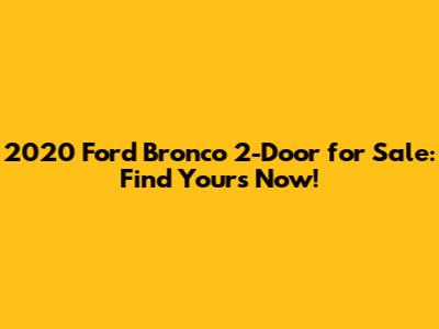 Finding a 2020 Ford Bronco 2-Door for sale can be an adventure in itself, but with the right knowledge and strategies, you can find the perfect Bronco to suit your needs and budget. So, get out there, do your research, and start your search today. Happy Bronco hunting, folks!