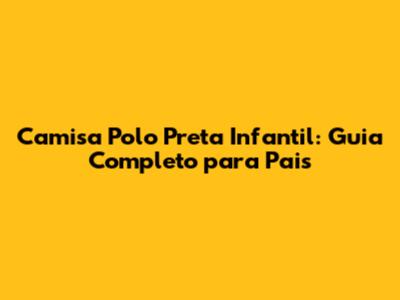 Camisa Polo Preta Infantil: Guia Completo Para Pais