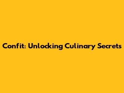Confit: Unlocking Culinary Secrets