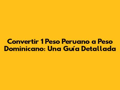 Convertir Soles Peruanos A Pesos Dominicanos: Guía Completa
