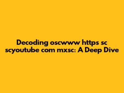 Decoding Oscwww Https Sc Scyoutube Com Mxsc: A Deep Dive
