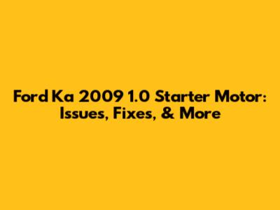 Ford Ka 2009 1.0 Starter Motor: Issues, Fixes, & More