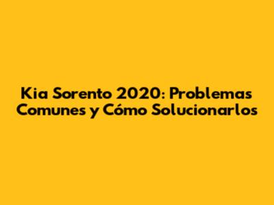 Kia Sorento 2020: Problemas Comunes Y Cómo Solucionarlos