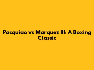 Pacquiao Vs Marquez III: A Boxing Classic