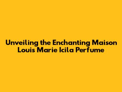Unveiling The Enchanting Maison Louis Marie Icila Perfume